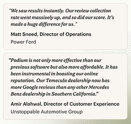 Podium’s AI Employee makes your dealership more responsive and efficient—working 24/7 without breaks or downtime.