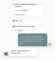 - Answer questions from Google and Facebook in real-time via text, with AI ensuring every lead gets a fast, natural response